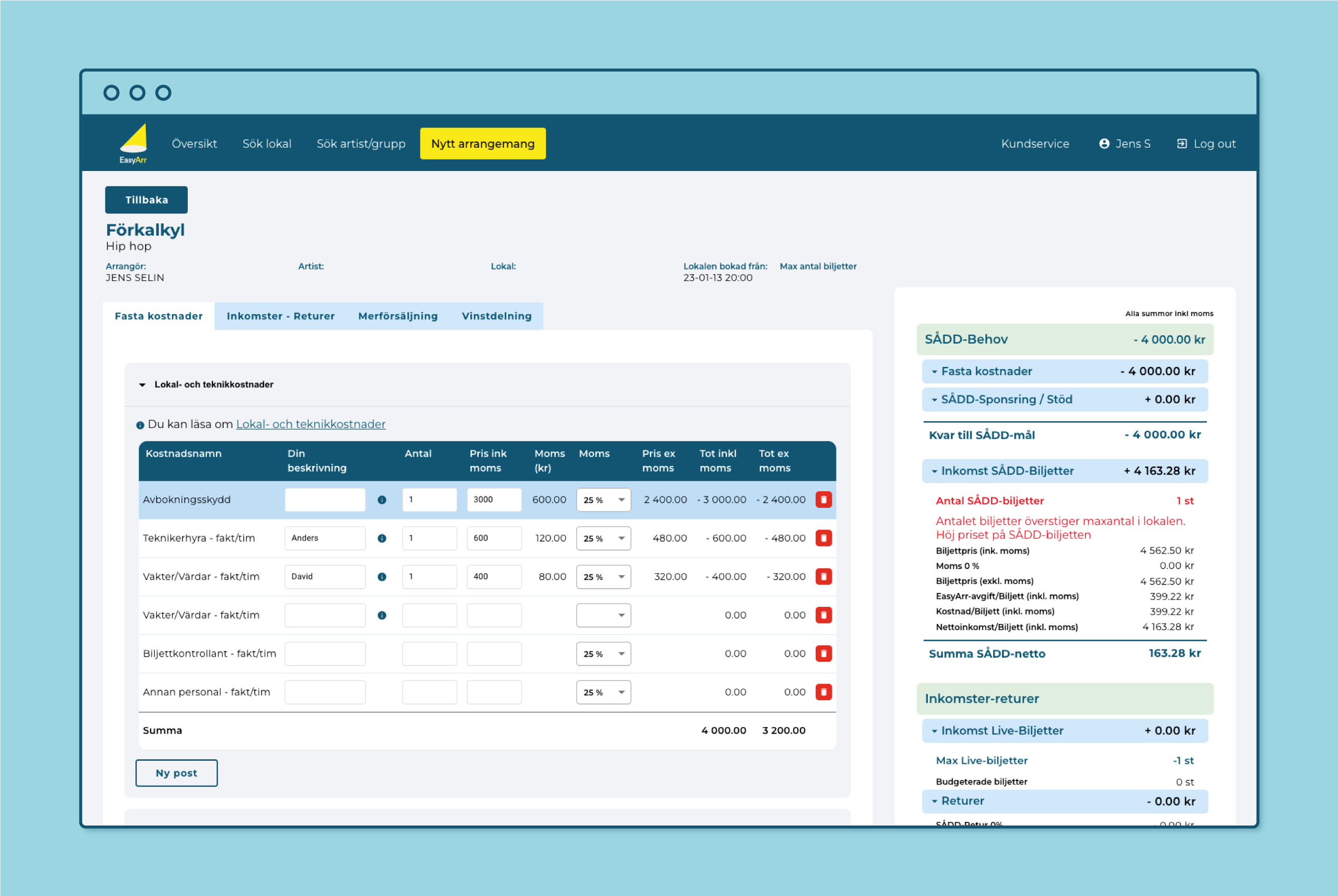We created a website that explained how the product works for each user. The SAAS product needed some trials and errors and several rounds of user tests, both quantitative and qualitative, before we reached a solution that is now launched and used by artists, venue owners, and promoters to create events with guaranteed profits.