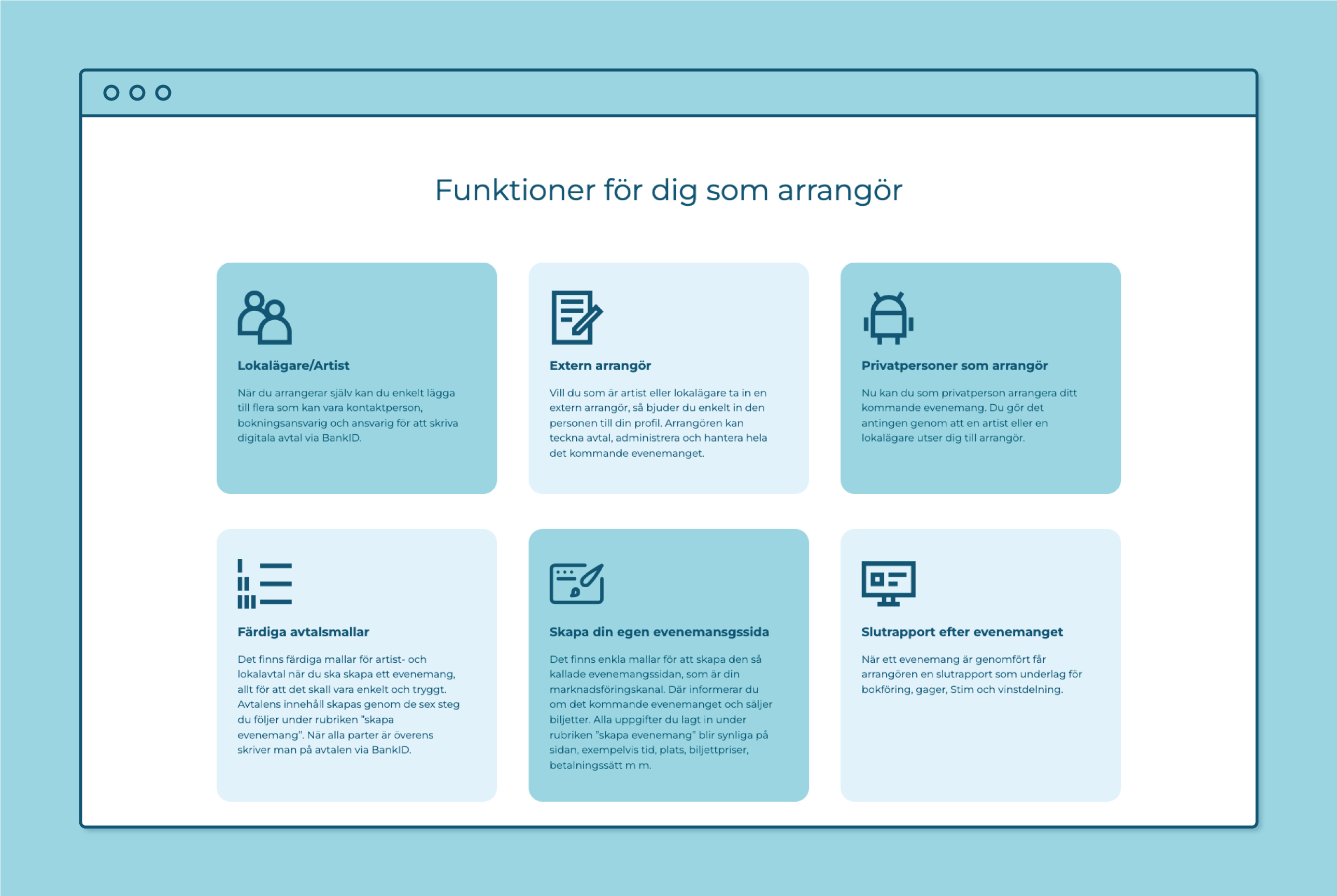 We identified that there is a lot of talent all over Sweden that doesn't get a chance to perform due to a lack of funding. At the same time, there's also a lot of mid-size venues like bars ande restaurants that don't put on live shows.